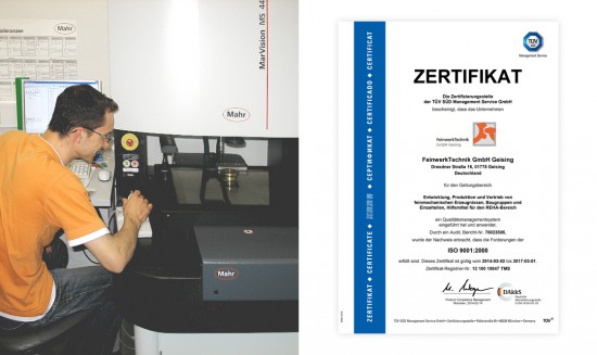 Am 02. Februar 2016 fand das 11. Überwachungsaudit unseres nach ISO 9001:2008 zertifizierten QMS statt. Der Auditor des TÜV SÜD Management Service bescheinigte der FeinwerkTechnik GmbH Geising die Kon ...